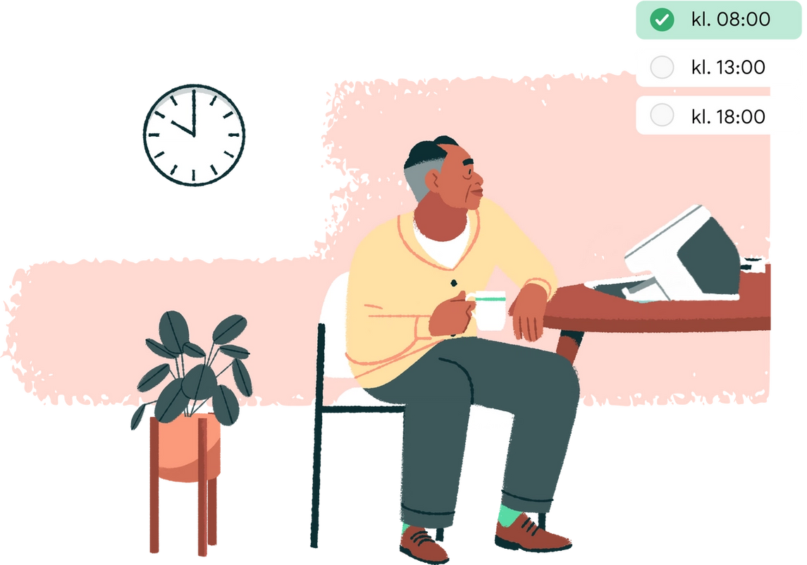 Med medisineringsstøtte må mange pasienter tilpasse dagen sin etter når hjemmesykepleien kommer med medisinene. Med elektroniske medisindispensere kan pasientene planlegge dagen sin bedre, samtidig som de får rett medisin til rett tid. Dispenseren lager lyd når medisinen skal tas – og skulle pasienten likevel glemme å ta medisinen sin, vil helsepersonell få et varsel i et eget system som de kan følge opp.