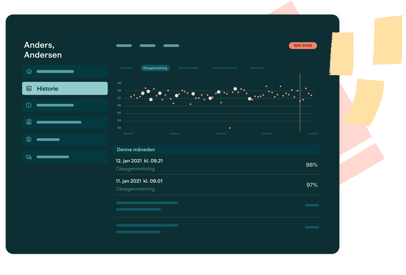 I appen ser patienten sin vårdplan, sina mätresultat, frågeformulär samt alla pågående meddelanden med sina vårdkontakter.